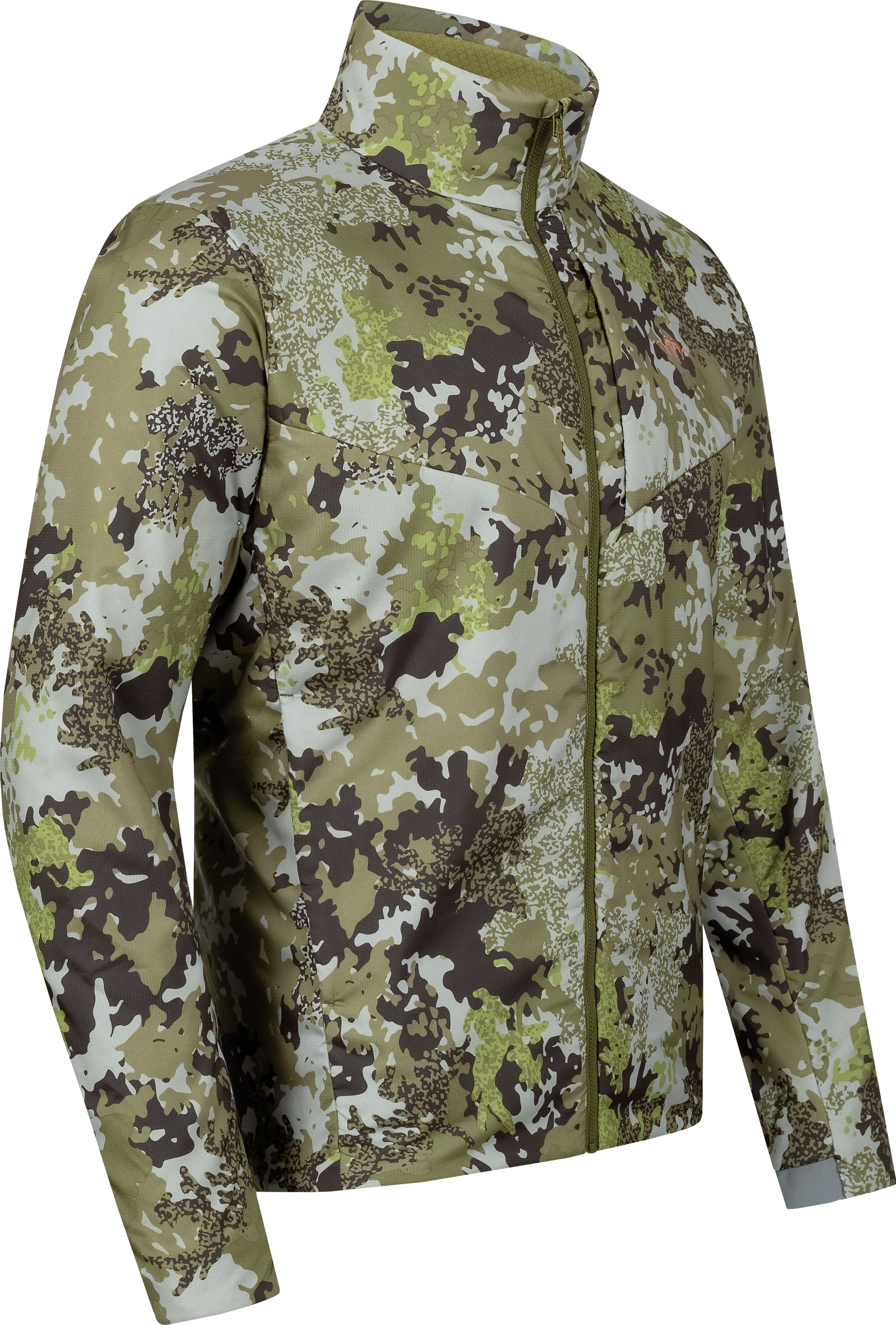 Insulation jacket accommodating milder more transition seasonal condit ions as well as higher activity levels. The face fabric is wid resist ant, water repelling, lightweight and stretchable. Air permeable insulation providing superior moisture management.