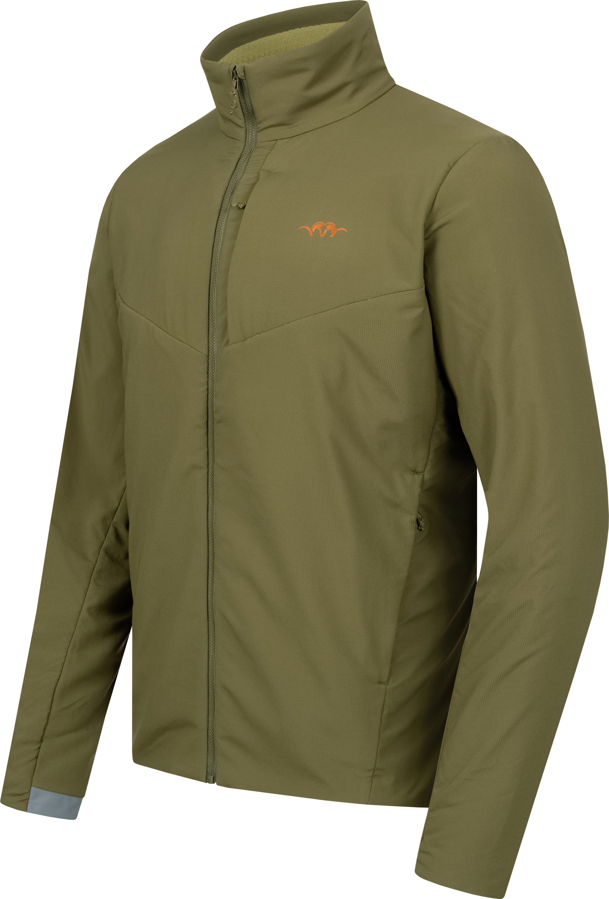 Insulation Jacket | Lightweight weather resistant outside fabric | Hig h permeable inside fabric | One chest pocket | Two hand warme and bac kpack accessible pockets | Elastic insert in the lower arm for snuggerfit | Chin protection over front zip.