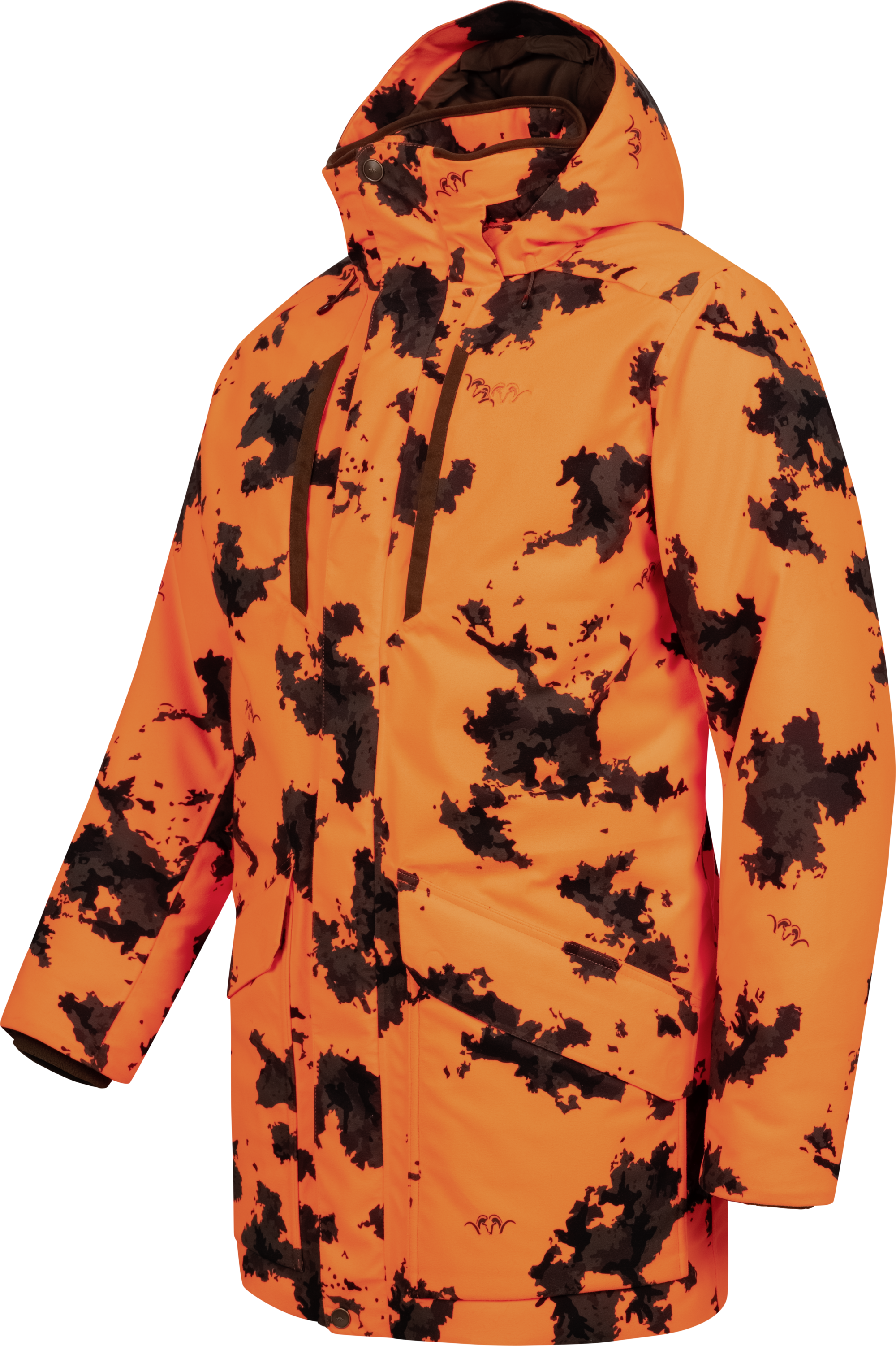 Wasser- und winddichte sowie atmungsaktive Jacke in Parka-Länge. Hybri de Isolationsschicht mit einzigartigen 3D-Daunenkammern am geamten Ja ckenkörper und elastischer Daunennaht am oberen Rücken für mehr Bewegungsfreiheit. Das in die übrigen Bereiche der Jacke eingearbeitete Prim aloft Rise reduziert das Volumen, trocknet schnell und maximirt den W ärmerückhalt. Abnehmbare, verstellbare 3-Punkt-Kapuze. 2 Brusttaschenmit Reißverschluss, die als Funkgerätetaschen genutzt werden können. N apoleontasche unter der mittleren Vorderteilblende. 2 große Hndwärmer taschen mit Patte, dehnbarer Falte und Patronenschlaufen. Die mittig platzierte Vorderlasche sowie Fleecebündchen an den Ärmeln verhindern l ästiges Eindringen von Nässe und Kälte. Große Innentasche imnteren B ereich, verstellbarer Saum.