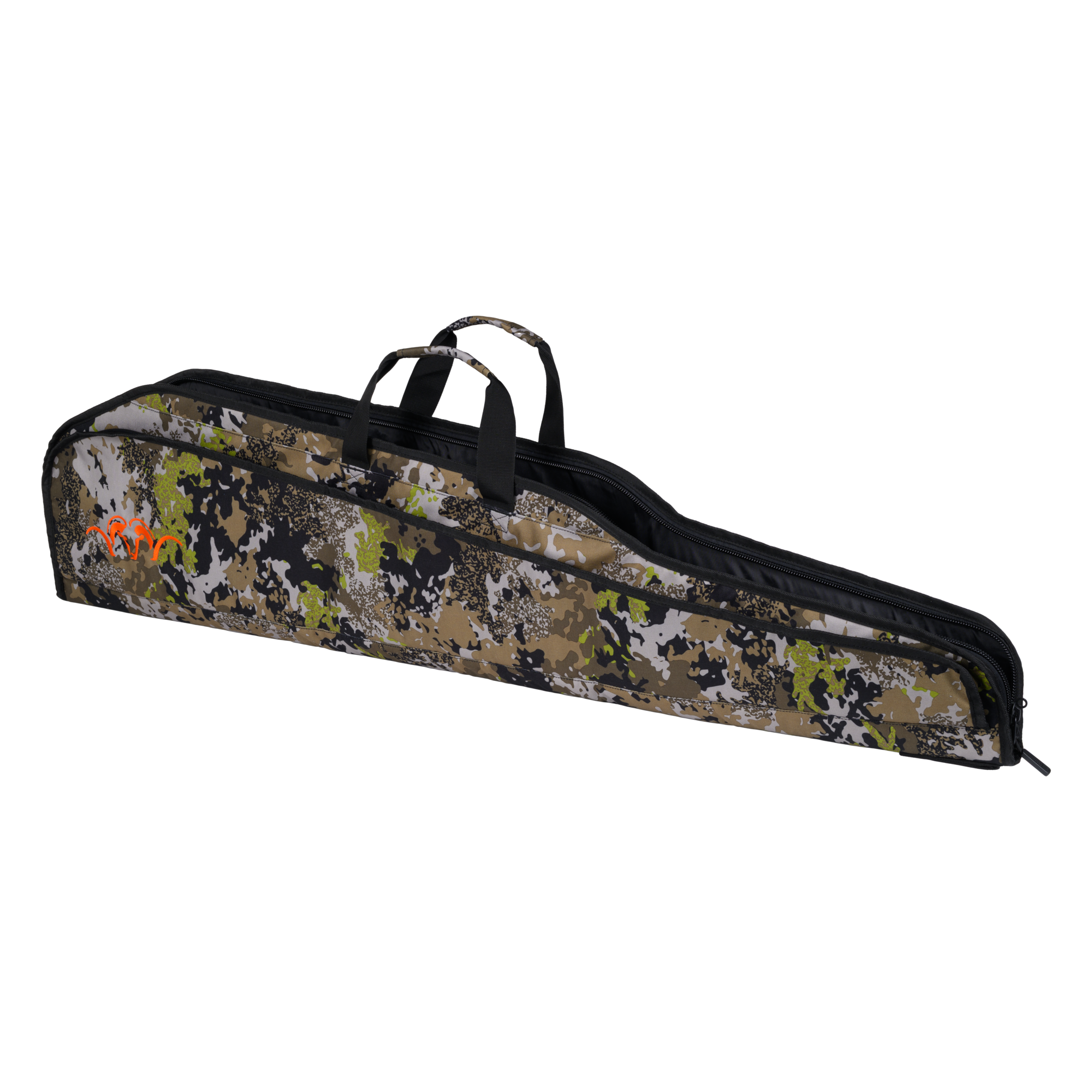 The Blaser Essential Rifle Slip HunTec Camo impresses with durable polyester in the signature HunTec hunting design and a practical compartment layout. A spacious main compartment is complemented by a front pocket featuring an additional mesh pocket. Comfortable carrying is ensured by a padded handle and a centrally positioned shoulder strap with a shoulder pad. Both the main compartment and the front pocket feature lockable zippers; two combination locks are included. Embroidered Blaser logos highlight the premium craftsmanship. Available in two sizes: short (119 × 29 × 6 cm) and long (132 × 29.5 × 8 cm). A functional solution when organization, comfort, and HunTec design are essential.