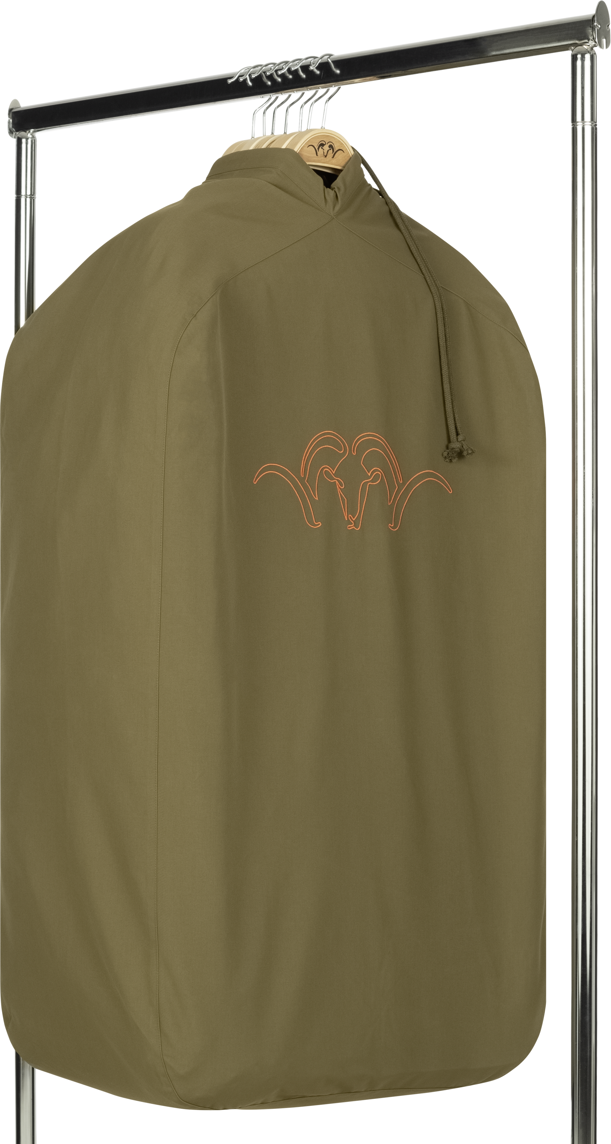 The spacious Blaser Garment Bag made of 100% Cordura material offers plenty of space with its total length of 105 cm, width of 60 cm and depth of 30 cm. Several items of clothing can be protected and transported on hangers through the upper recess in the bag. A drawstring can be used to close the bag at the top; a zipper on the long and wide sides closes the bag there. The olive-green garment bag stands out in particular thanks to its high-quality Argali embroidery on the front. The Cordura material used, which makes up 100% of the garment bag, is particularly robust and abrasion resistant. It gives the bag an elegant and stylish look. The Blaser garment bag is the perfect companion when traveling or for protecting leisure or hunting outfits in the closet!