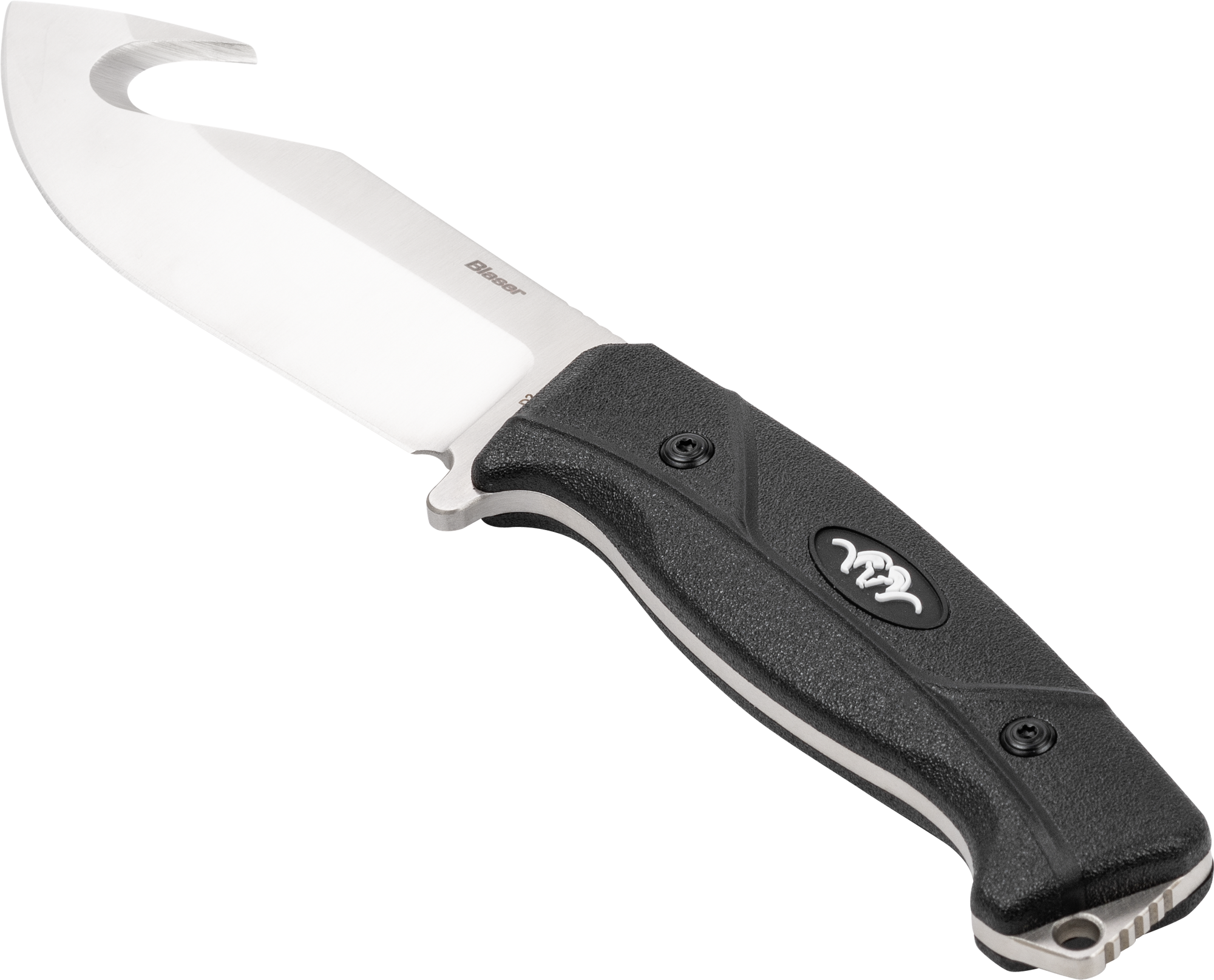 The Blaser Skinner Professional knife is the perfect tool for hunting. Equipped with a gut hook, it is ideal for field dressing, skinning, and removing hides from game. The ergonomic plastic handle feels comfortable in the hand and is both durable and moisture-resistant. The full-tang construction, with blade and handle made from a single piece of steel, offers exceptional stability. The drop-point blade made of robust D2 steel impresses with its edge retention and corrosion resistance, perfect for hunting use. Precise work is facilitated by the jimping on the back of the blade. A practical nylon pouch completes the package.