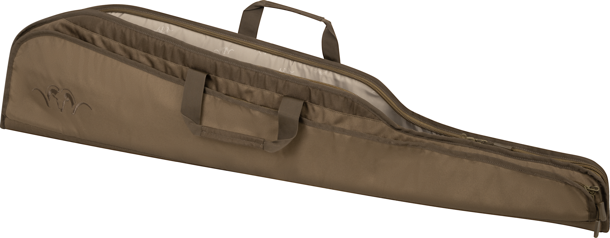 The Blaser Futteral Essential is the perfect choice for transporting your hunting gear safely and stylishly. Made from durable and long-lasting polyester, it provides reliable protection. The case features a spacious main compartment and an additional volume pocket on the front, perfect for storing a shooting stick or hunting umbrella. A separate mesh pocket in the front pocket adds extra storage space. For maximum carrying comfort, the case is equipped with a padded carrying handle and a centrally placed shoulder strap with a padded shoulder pad. Lockable zippers on the main and front pockets ensure necessary security. Two combination locks are included. The embroidered Blaser logo adds a touch of quality to the case.