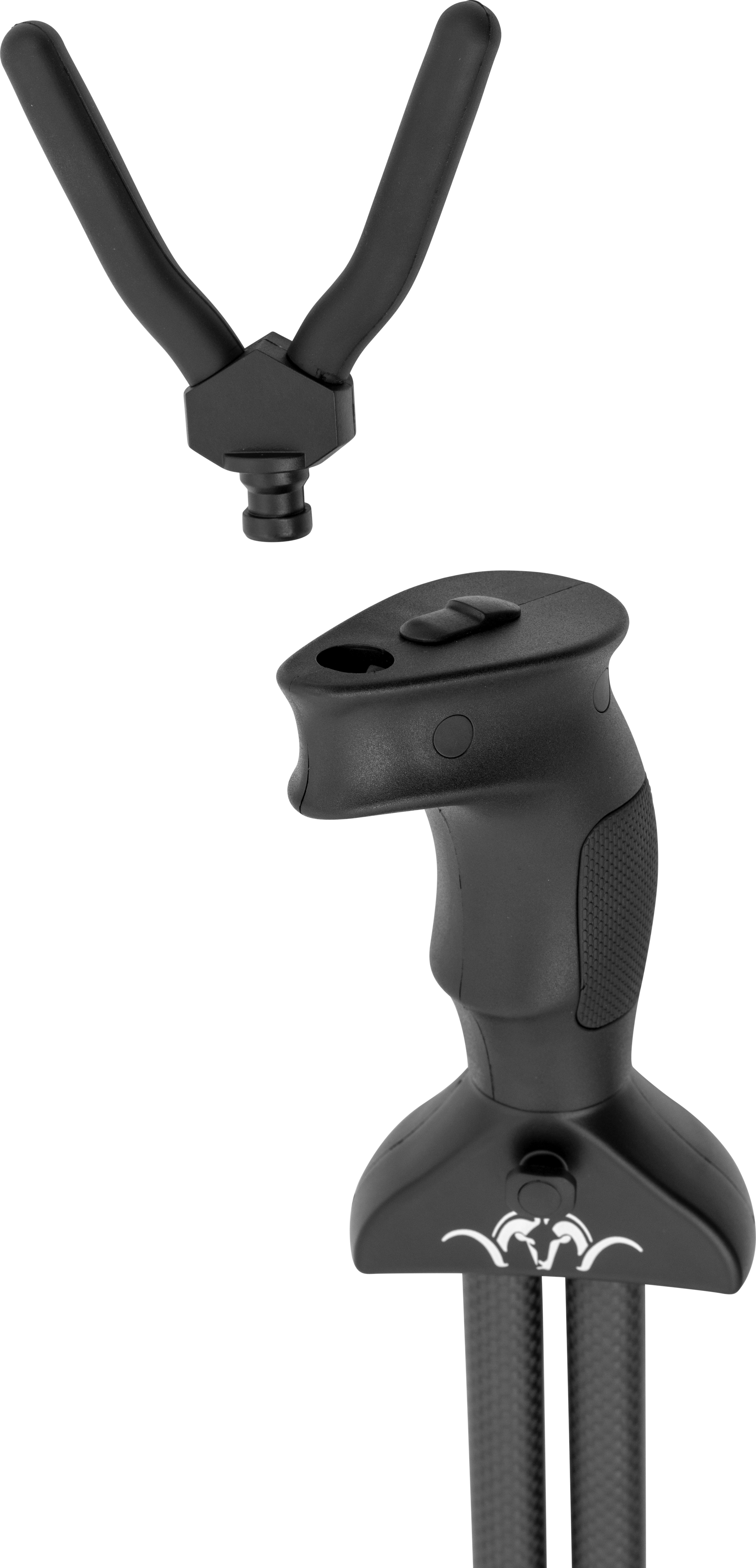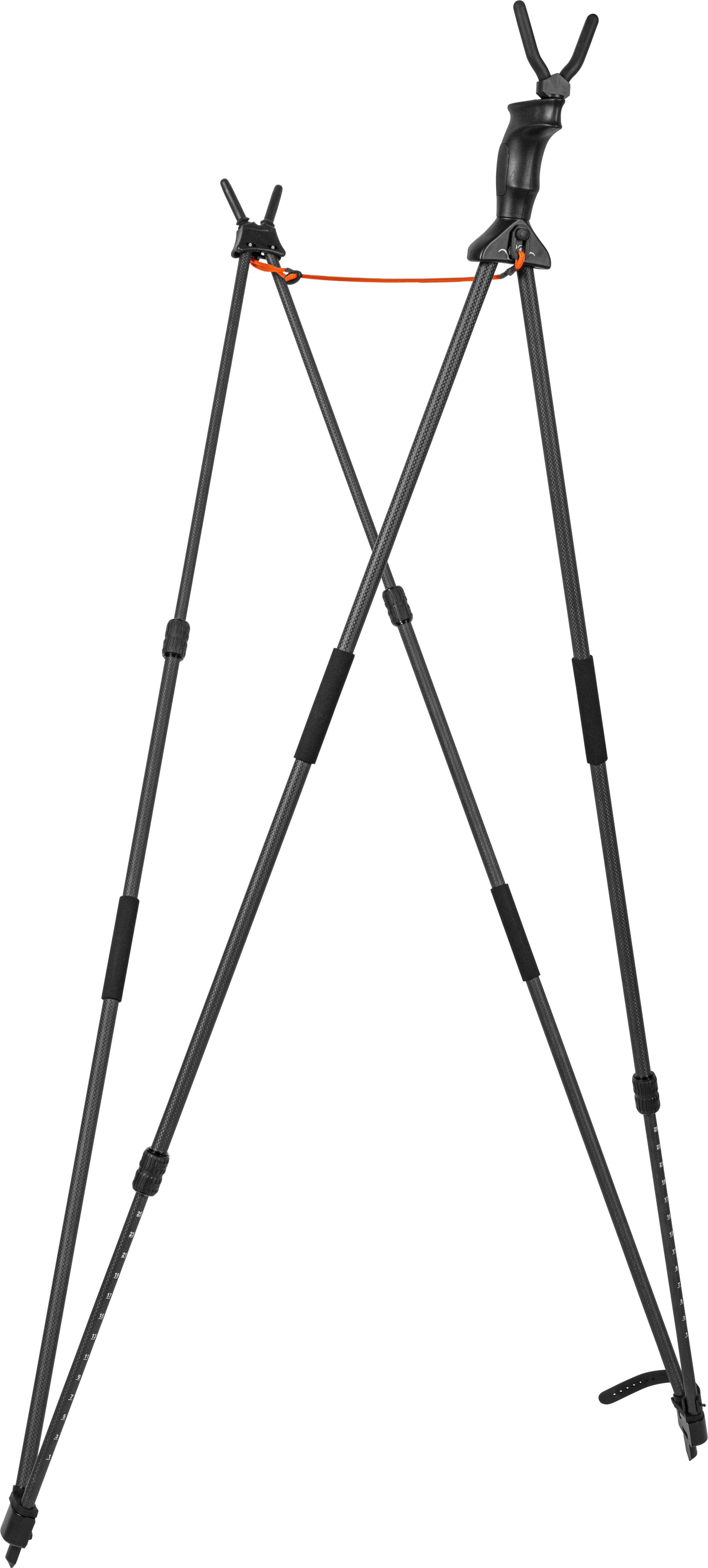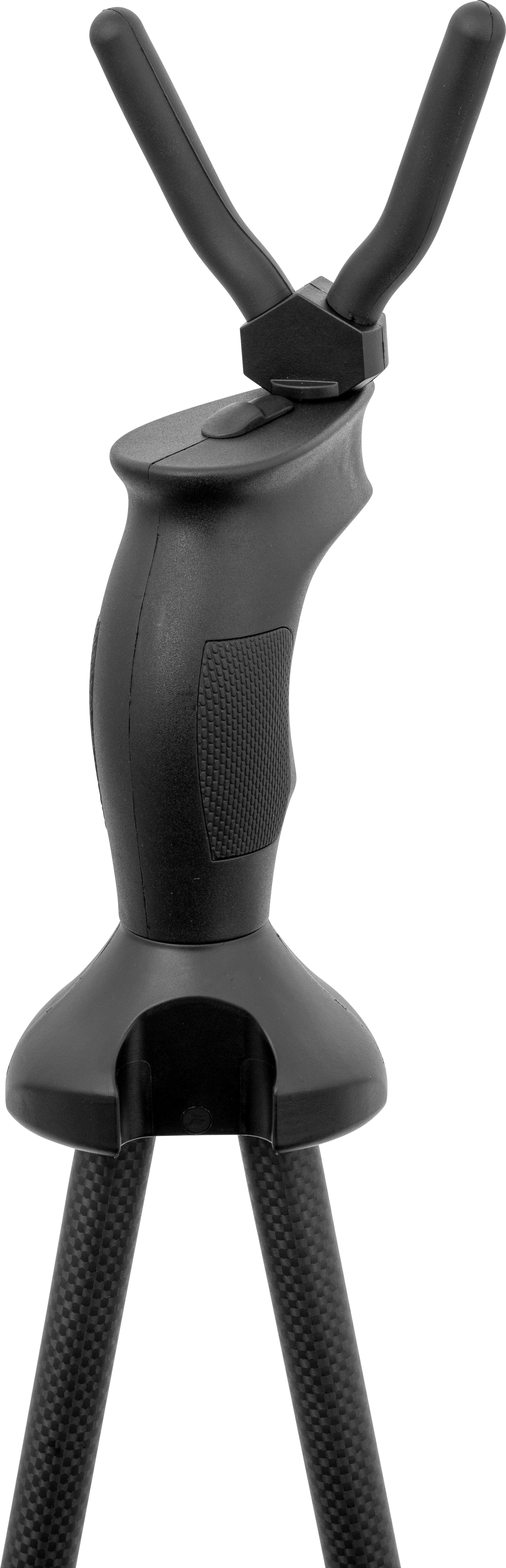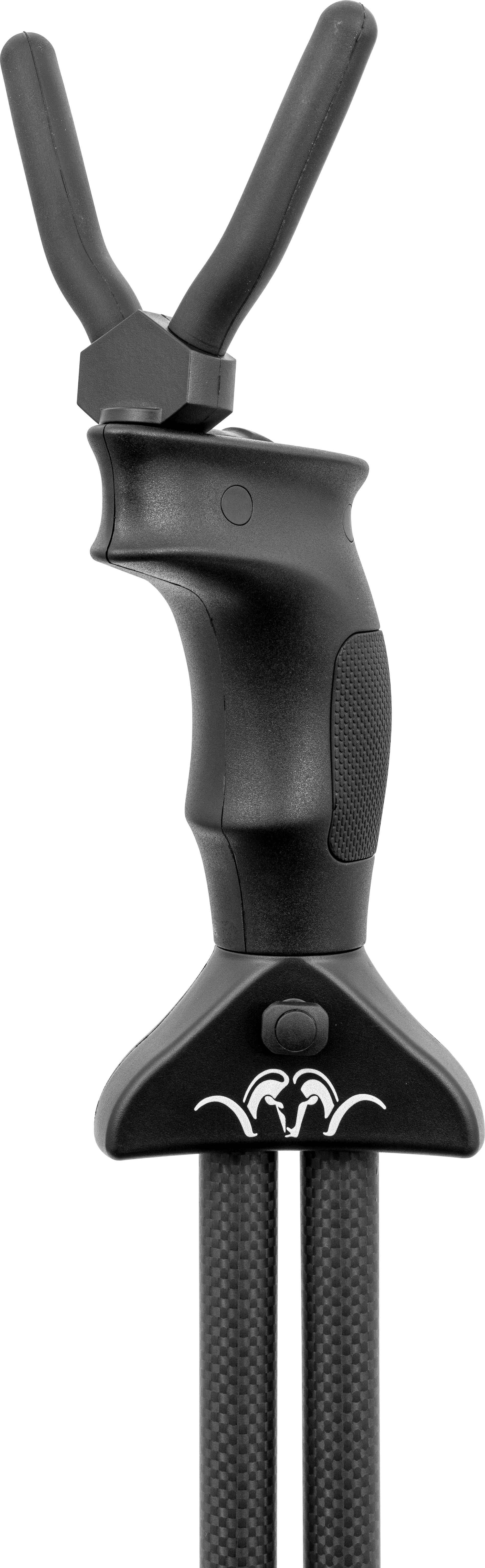 The patented swivel grip on the rest fork allows tracking of game within a lateral range of 20 meters. Made from robust and lightweight carbon, the shooting stick weighs only 985 grams and is adjustable in height from 1.24 meters to 1.98 meters.