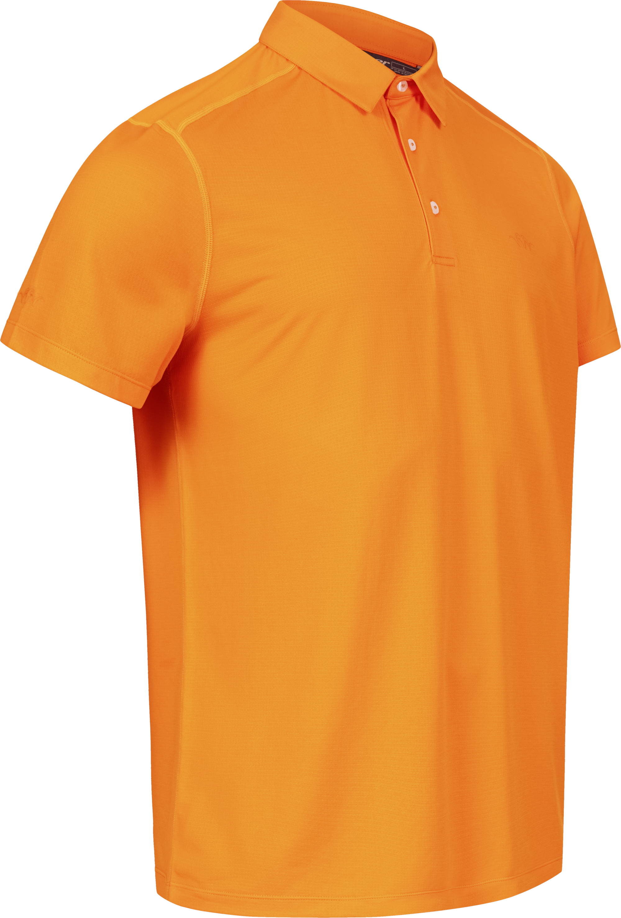 Functional polo shirt made from fast drying double face knit fabric. Main fabric collar and cuffs. Classic 3 button look. Flat lockseams ov er arm hole and shoulder for reduced pressure points. Special double sleeve branding for visibility when worn under a shooting vest.