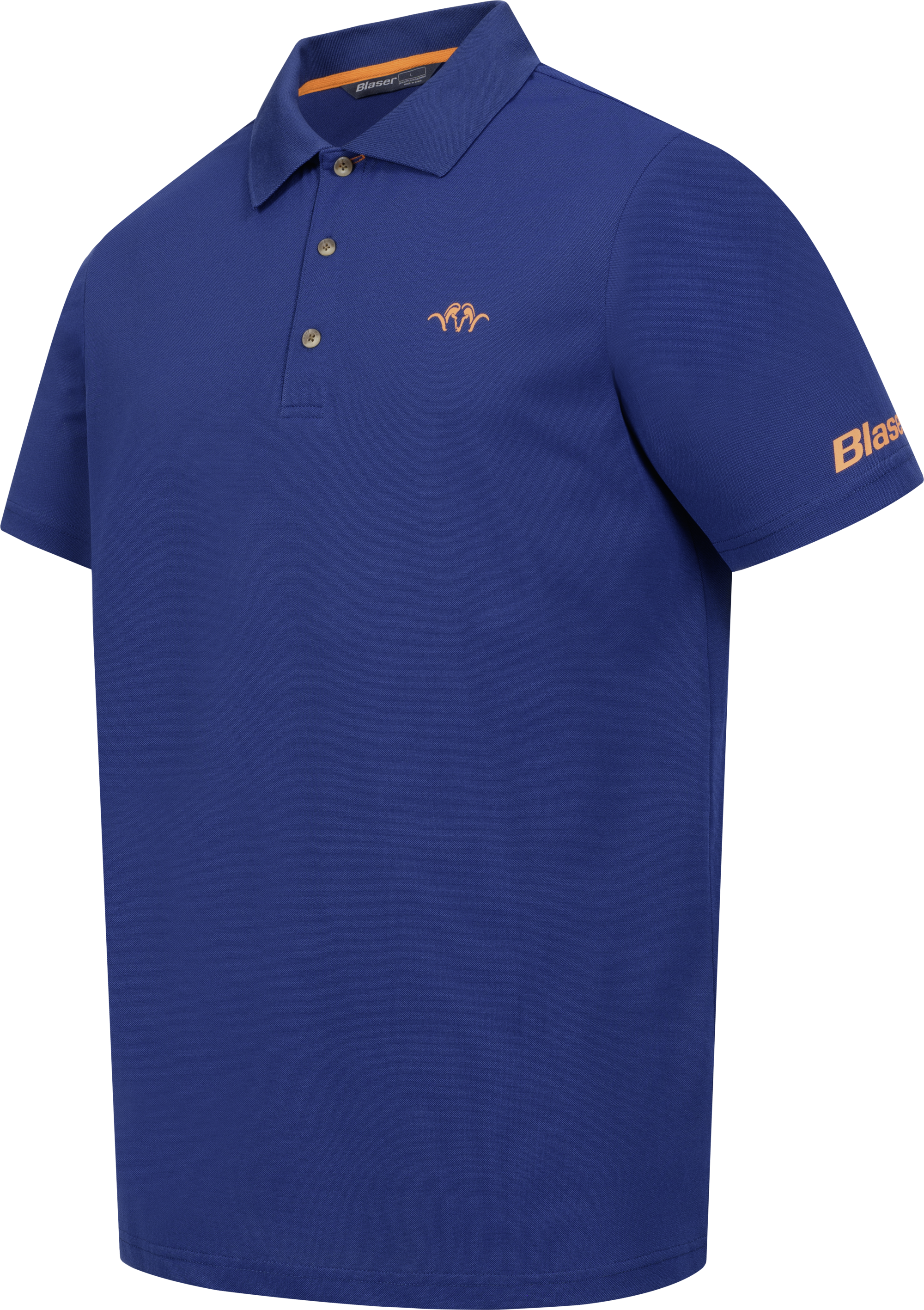 Functional polo shirt made from fast drying double face knit fabric. Main fabric collar and cuffs. Classic 3 button look. Flat lockseams ov er arm hole and shoulder for reduced pressure points. Special double sleeve branding for visibility when worn under a shooting vest.