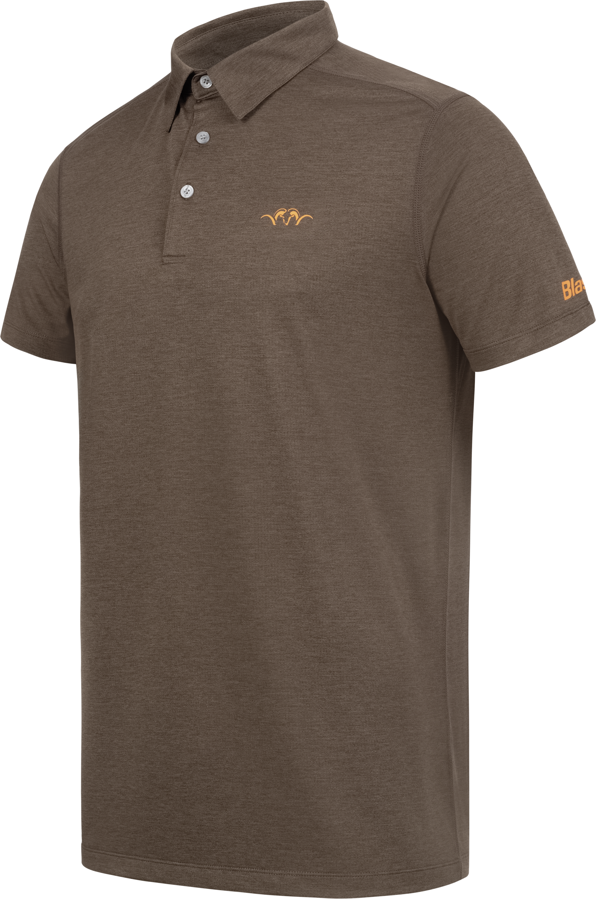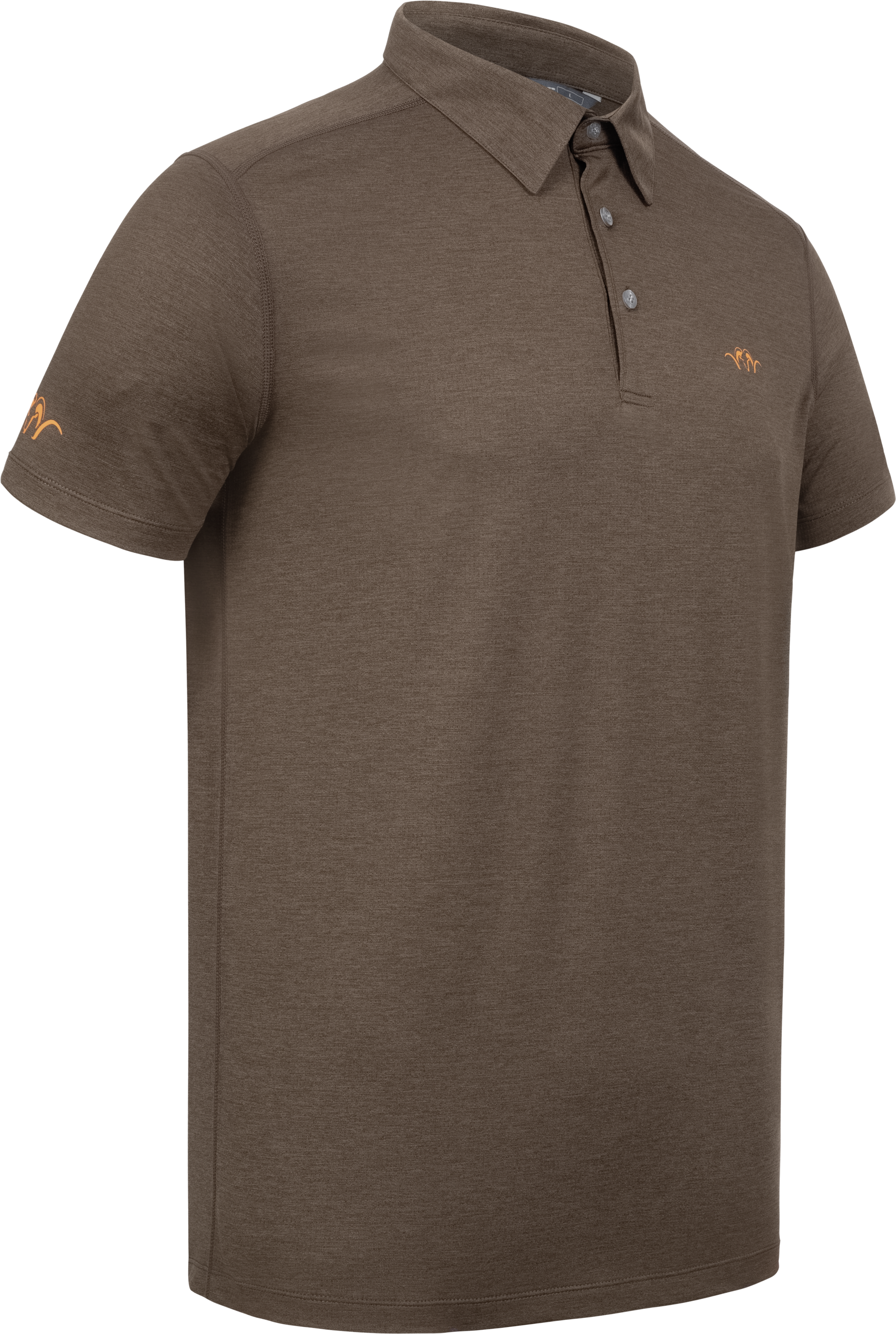 Functional polo shirt made from fast drying double face knit fabric. Main fabric collar and cuffs. Classic 3 button look. Flat lockseams ov er arm hole and shoulder for reduced pressure points. Special double sleeve branding for visibility when worn under a shooting vest.