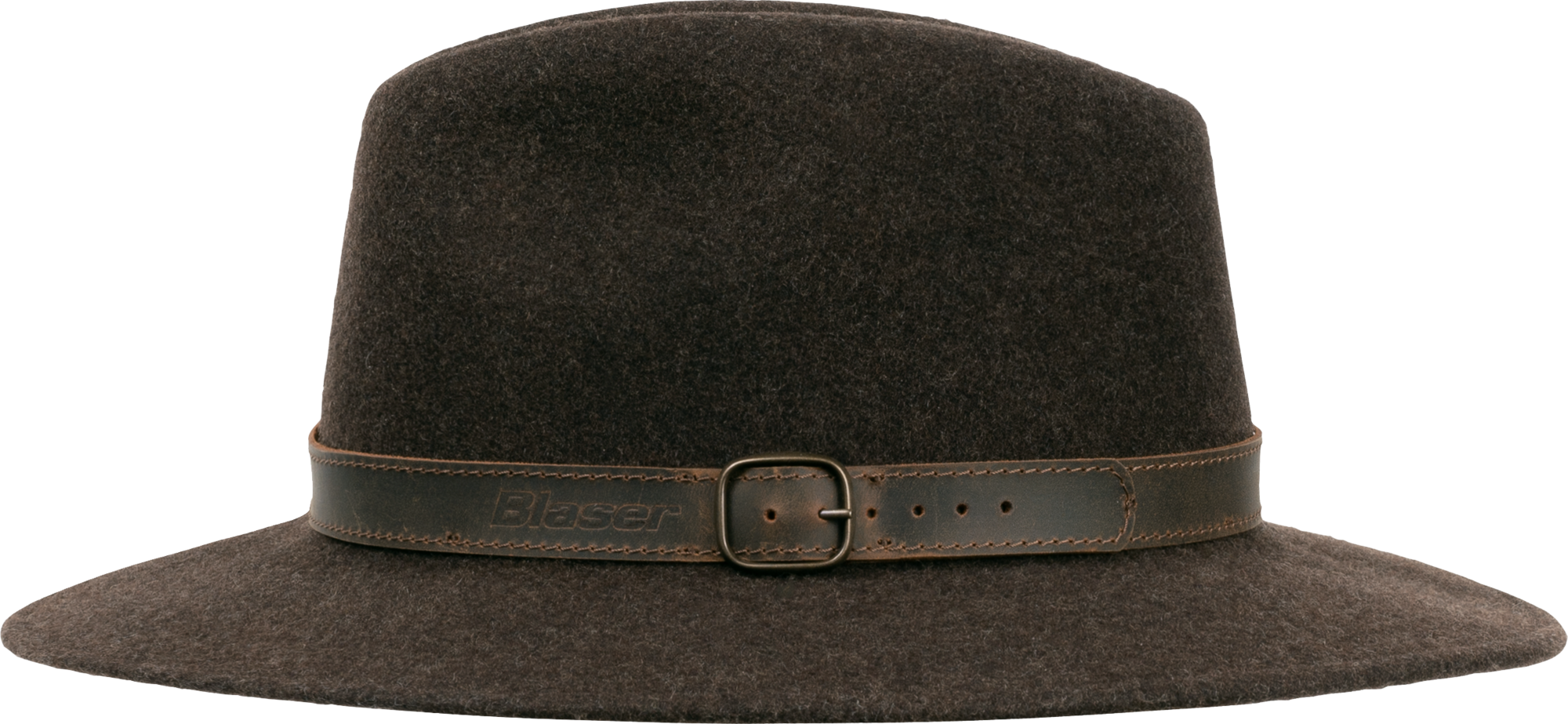 With embossed Blaser logo on the hat band and brass buckle. Water-rep ellent, crushable, breathable and easy-care.