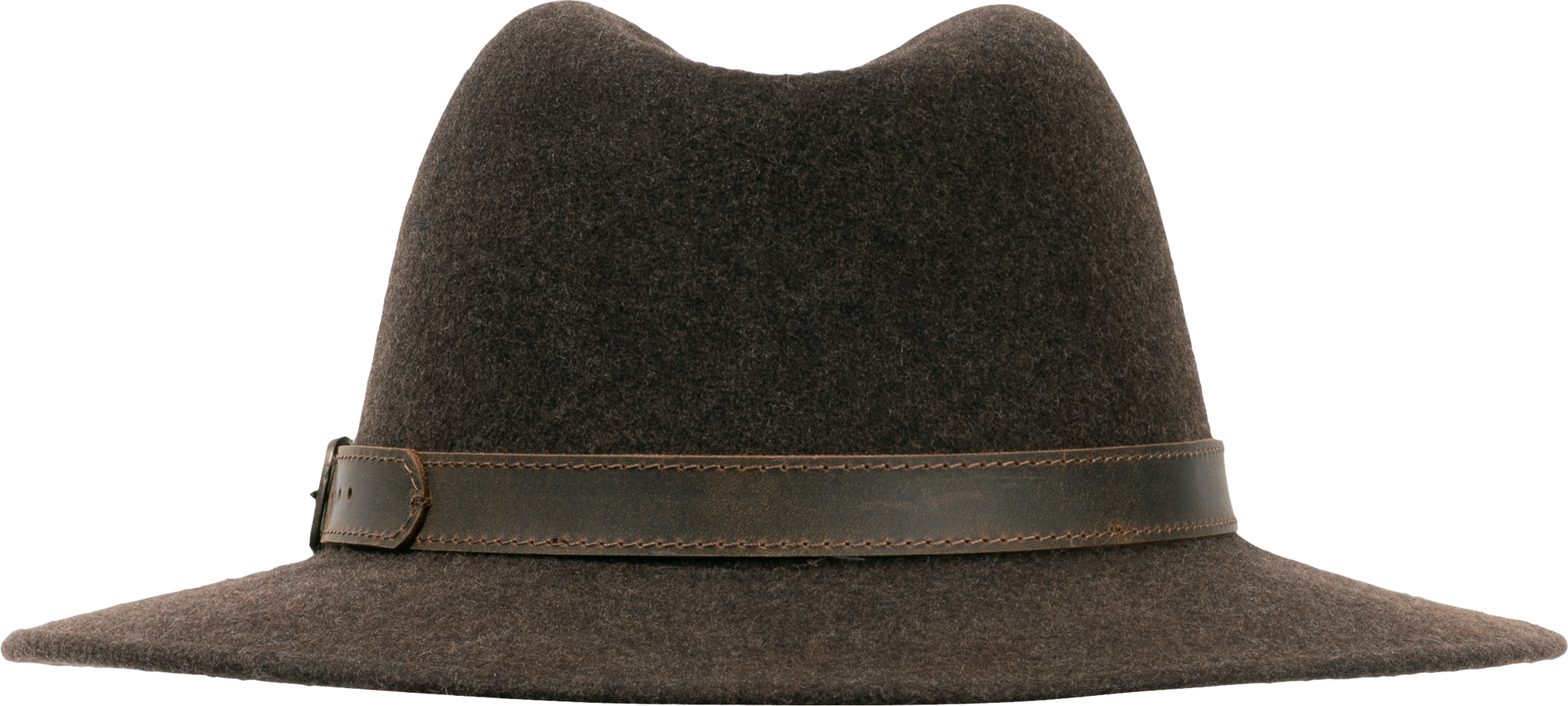 Embossed logo on hatband with elegant brass buckle